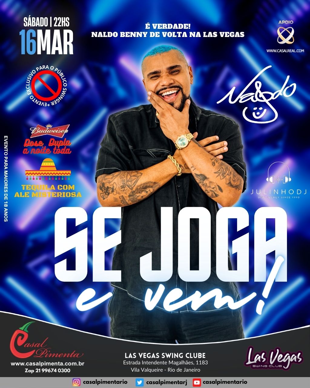Naldo Benny retornando a Las Vegas! Quem foi no último show pode rever e quem não foi ver pela primeira vez! Show de tequila com Ale Misteriosa! Sorteios de Brindes e drinks! O que acontece em Vegas, fica em Vegas!
