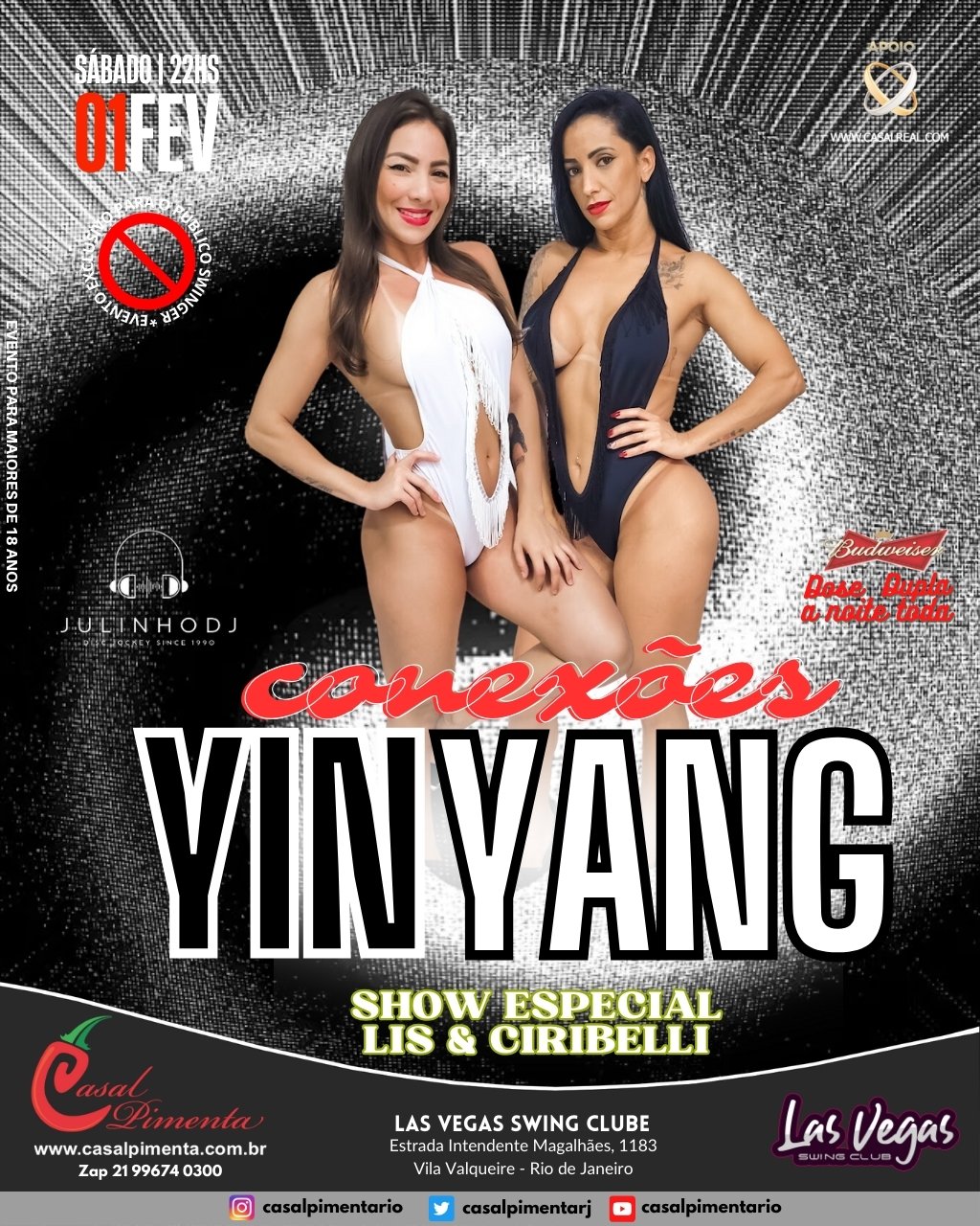 Uma festa para conexões reais Yin (masculino) e Yang (feminino)! Show especial e interativos com Lis Lopes e Ciribelli Scarlet! O que acontece em Vegas, fica em Vegas!