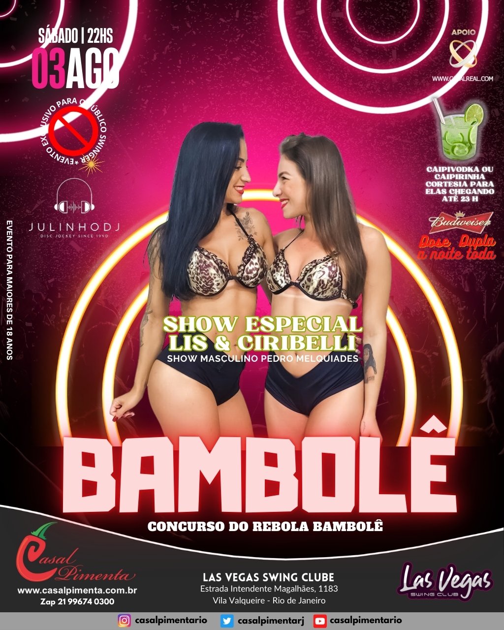 Vamos comemorar o aniversário da stripper mais famosa e requisitada do swing carioca! Show especial e interativos com Lis Lopes e Ciribelli Scarlet! Parabéns no sensual corredor polonês! Show masculino com Pedro Melquiades! O que acontece em Vegas, fica em Vegas!