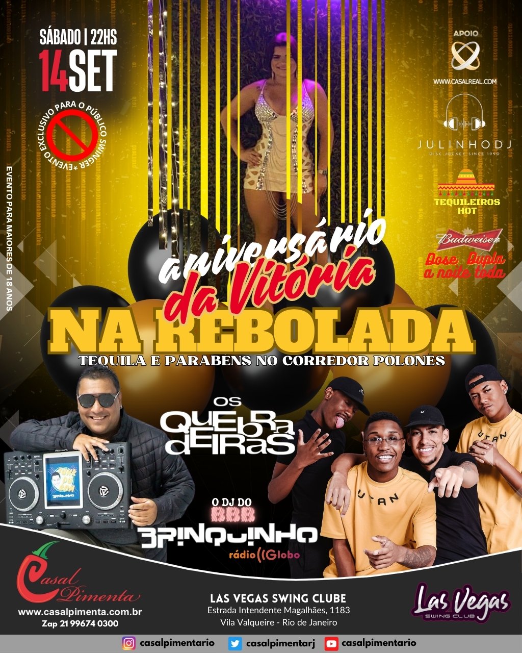 Comemorando o aniversário da Sra LV! Show especial com os Quebradeiras! DJ Brinquinho com o melhor do Funk! Os Tequileiros Hot! Parabéns no Corredor Polonês! O que acontece em Vegas, fica em Vegas!