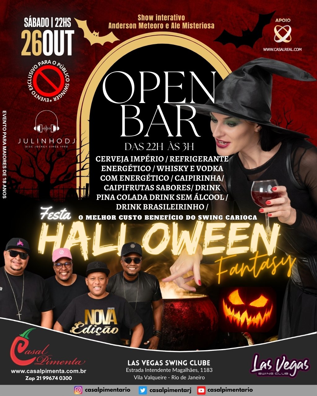 O Melhor custo benefício do swing carioca! Open bar com 14 ítens, Pagode ao vivo com o Grupo Nova Edição, shows de strippers, concurso fantasia mais sexy, gente bonita, animada e muito vuco-vuco! Aquela moral para galera no final do mês! O que acontece em Vegas, fica em Vegas!