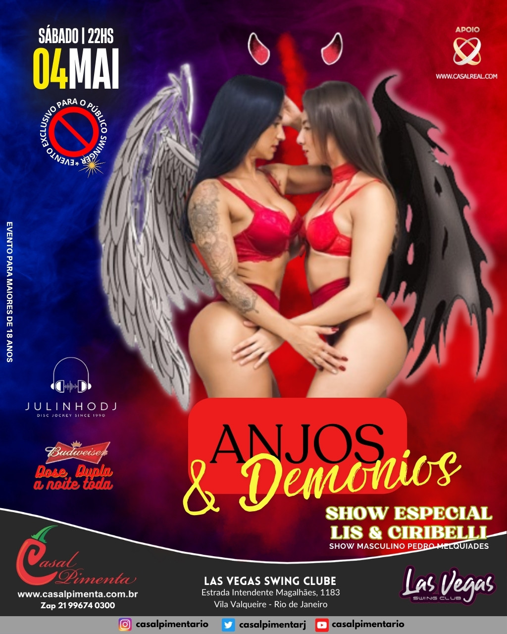 Uma festa para todas fantasias! Show especial e interativos com Lis Lopes e Ciribelli Scarlet! Show masculino com Pedro Melquiades! O que acontece em Vegas, fica em Vegas!
